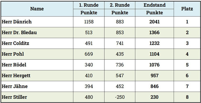 Wertungsliste - Skat am 20.03.2024